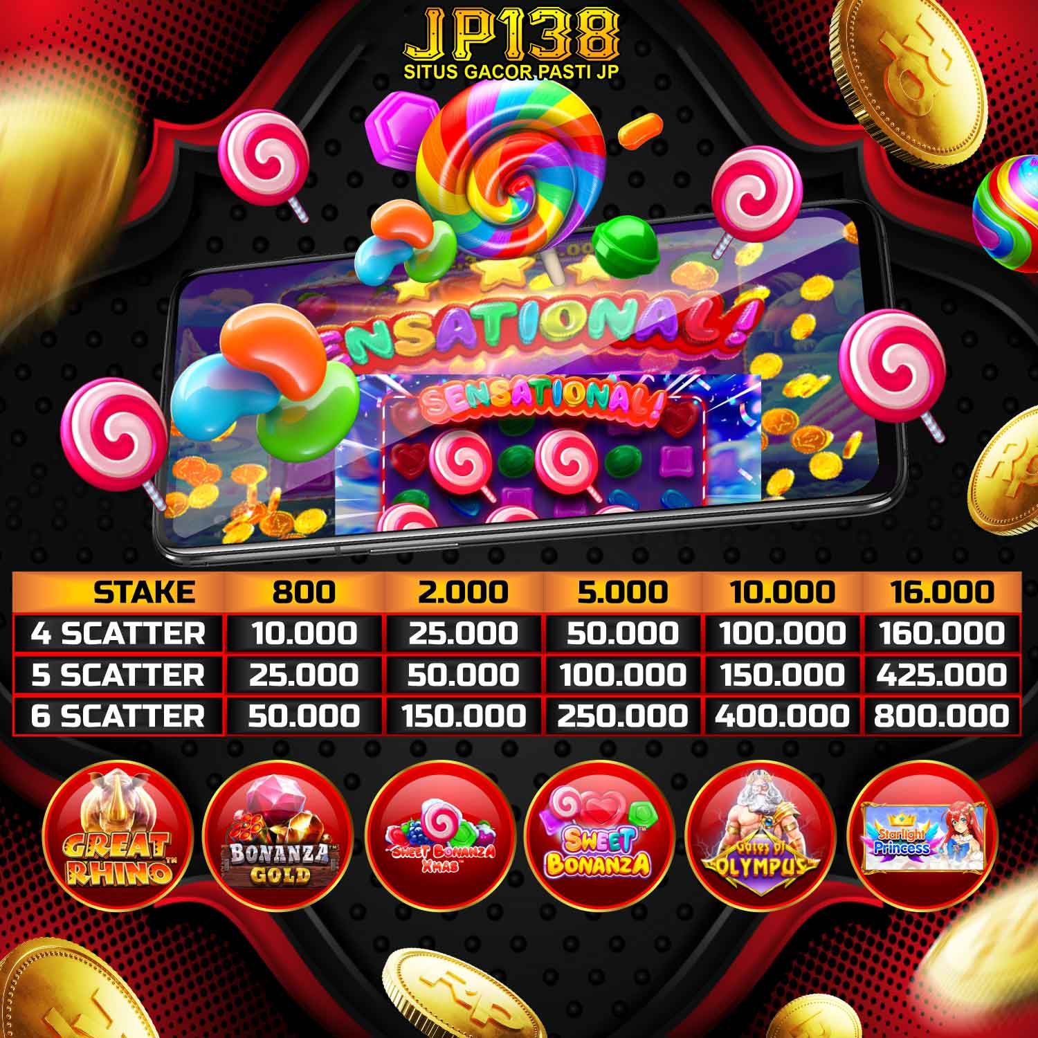- Bonus hanya berlaku untuk member baru yang pertama kali deposit di JP138 (TIDAK BERLAKU UNTUK DEPOSIT PULSA)